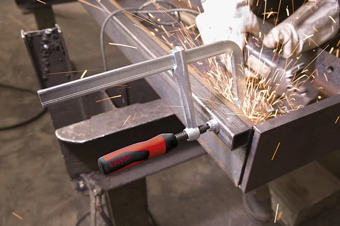 Originele Bessey geheel stalen lijmtang met een ergonomisch gevormde houten handgreep. De lijmtang heeft een geoptimaliseerd profiel en kan een spankracht leveren tot wel 6.000 N. Bessey Lijmtang geheel staal GZ 250/120