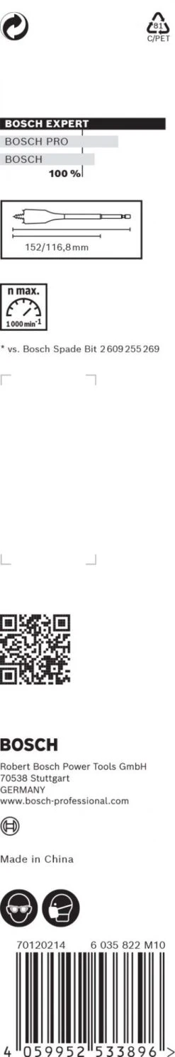 De Expert SelfCut Speed is voorzien van de meest geavanceerde ontwerpen voor speedboren, waardoor de boor gemakkelijk te gebruiken en zeer praktisch is voor professionals met zware klussen. De gepatenteerde Bosch schroefpunt brengt de speedboor met zelfs de lichtste druk in het hout. Dit is vooral handig als je ondersteboven of in krappe nissen moet boren. Het geavanceerde schepontwerp zorgt voor extra snelheid.