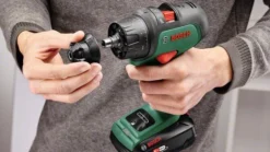 Deze accuklopboorschroevendraaier is buitengewoon intuïtief te bedienen en uiterst veelzijdig. Het kiezen van de gewenste modus voor schroeven, boren of klopboren met automatisch het juiste toerental is eenvoudig. De draairichting kan met één enkele klik worden veranderd door het innovatieve elektronische schakelaarsysteem met een LED-controlelampje. De borstelloze motor levert vermogen, compactheid en uithoudingsvermogen. Een magnetische kap voor schroeven en een boorhouder van 13 voor boren maken het wisselen tussen toepassingen nog eenvoudiger. Met de AdvancedImpact 18 kunnen een groot aantal klussen in hout, kunststof, baksteen, kalkzandsteen en metaal worden aangepakt.