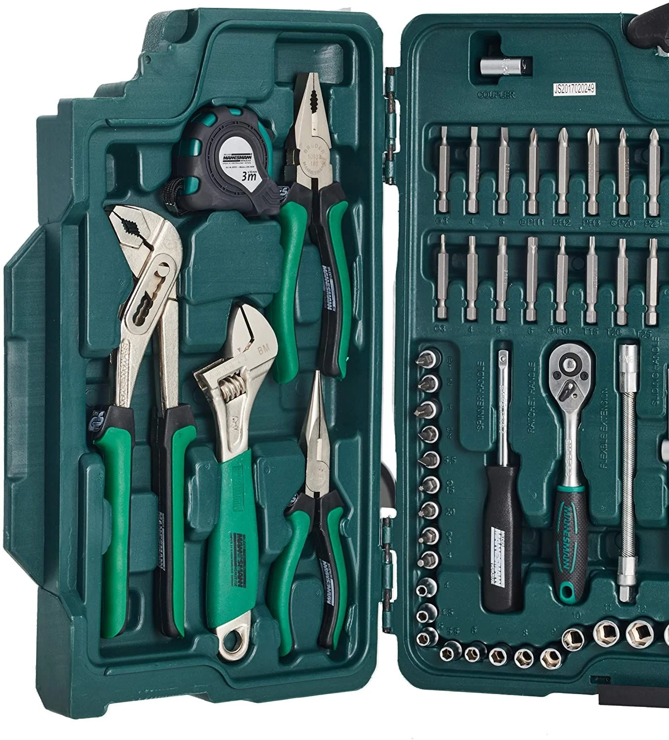 Zeer complete gereedschapset, 89-delig, in kunststof koffer met Green Line kwaliteitsgereedschap.