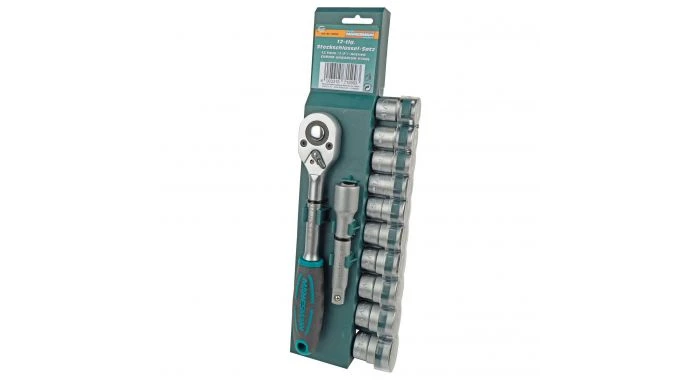 10x doppen (10 – 11 – 12 – 13 – 14 – 16 – 17 – 19 -21 en 22 mm), chroom vanadium staal, in kunststof houder.