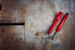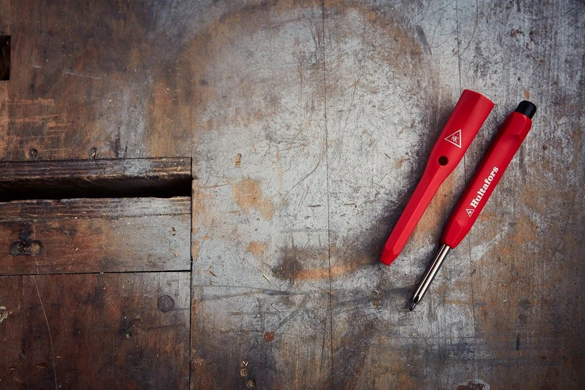 Handzaam Hultafors vulpotlood in houder met ingebouwde puntenslijper om zuiver af te tekenen.