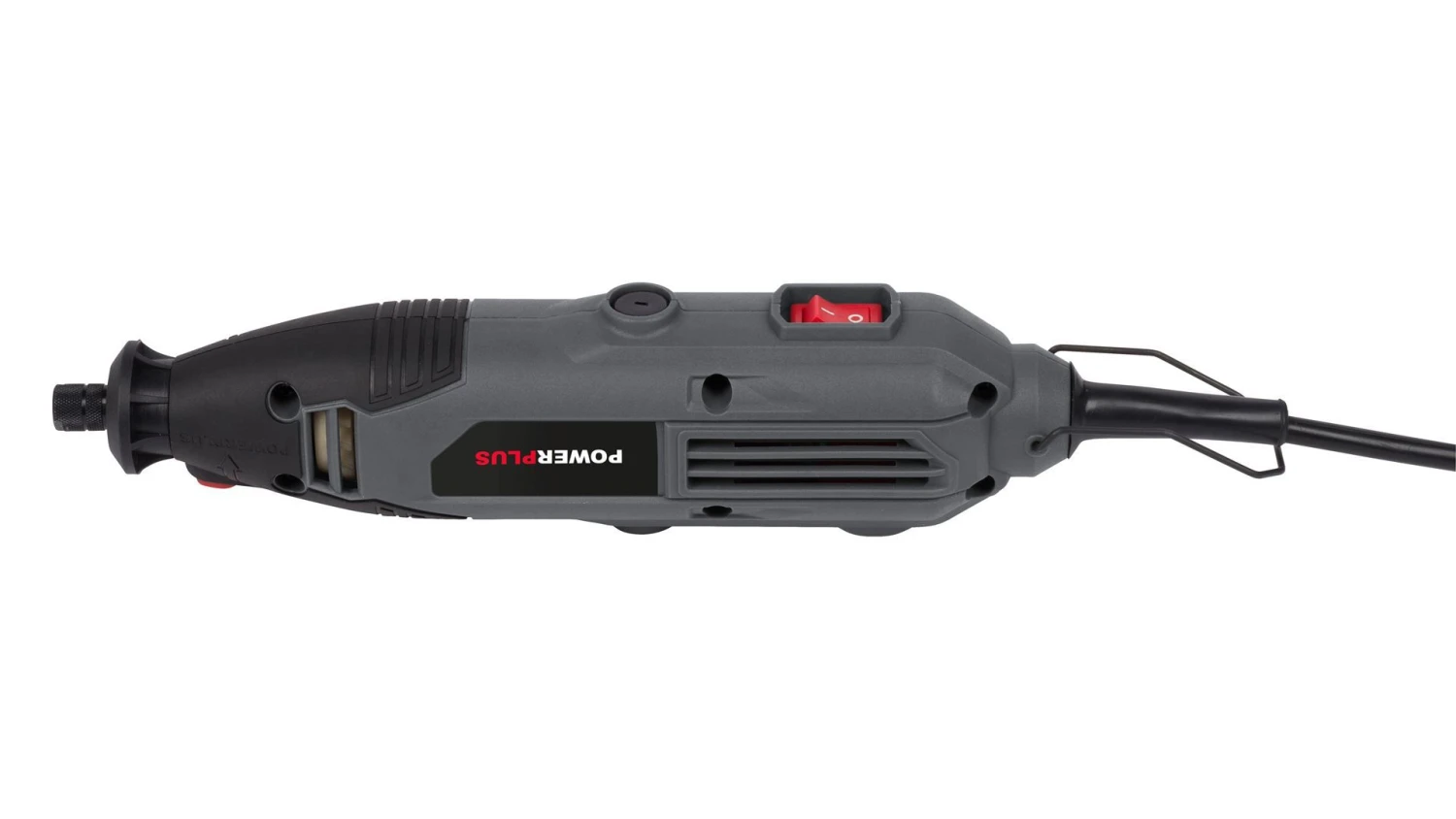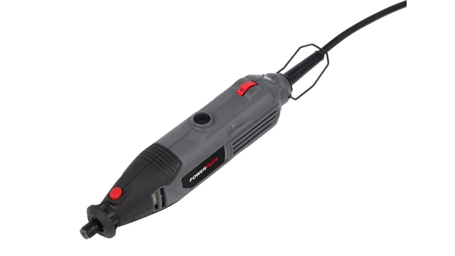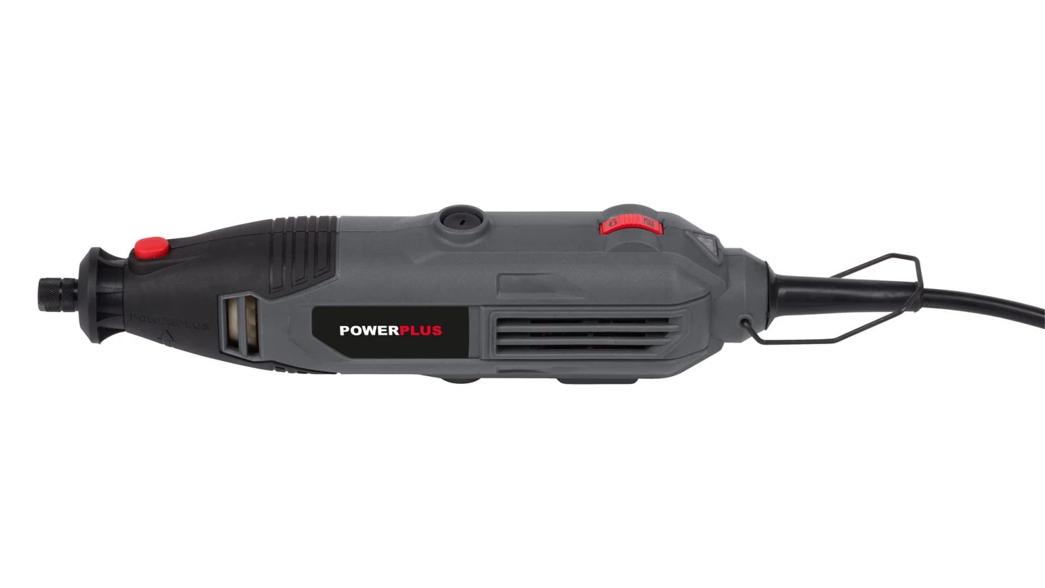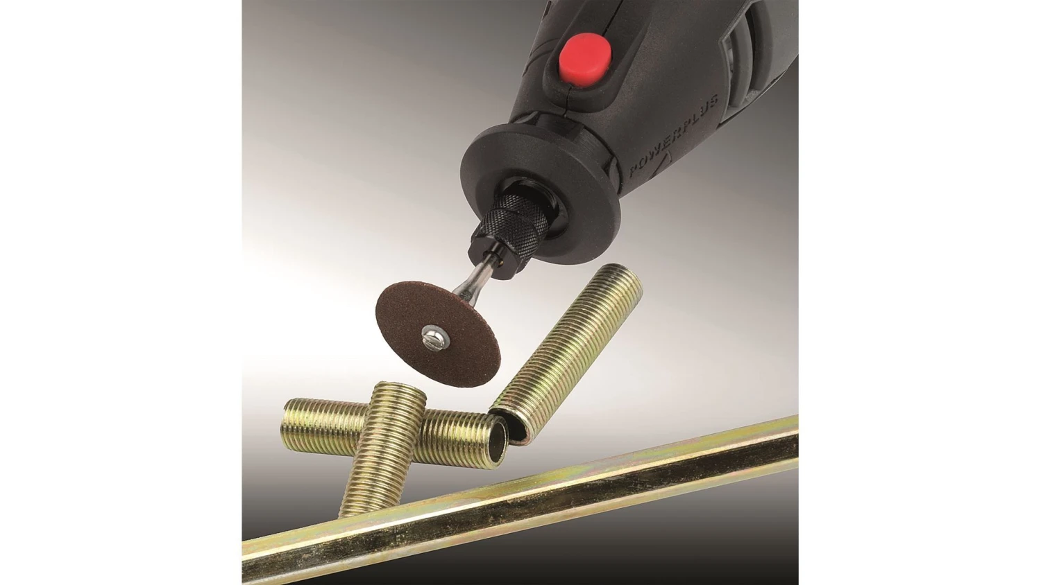 De roterende multitool haalt een variabel toerental van 8000 tot 32500min-1, afhankelijk van de snelheid die je kiest. Zo kan je met een laag toerental ook zachte materialen als plastic bewerken.