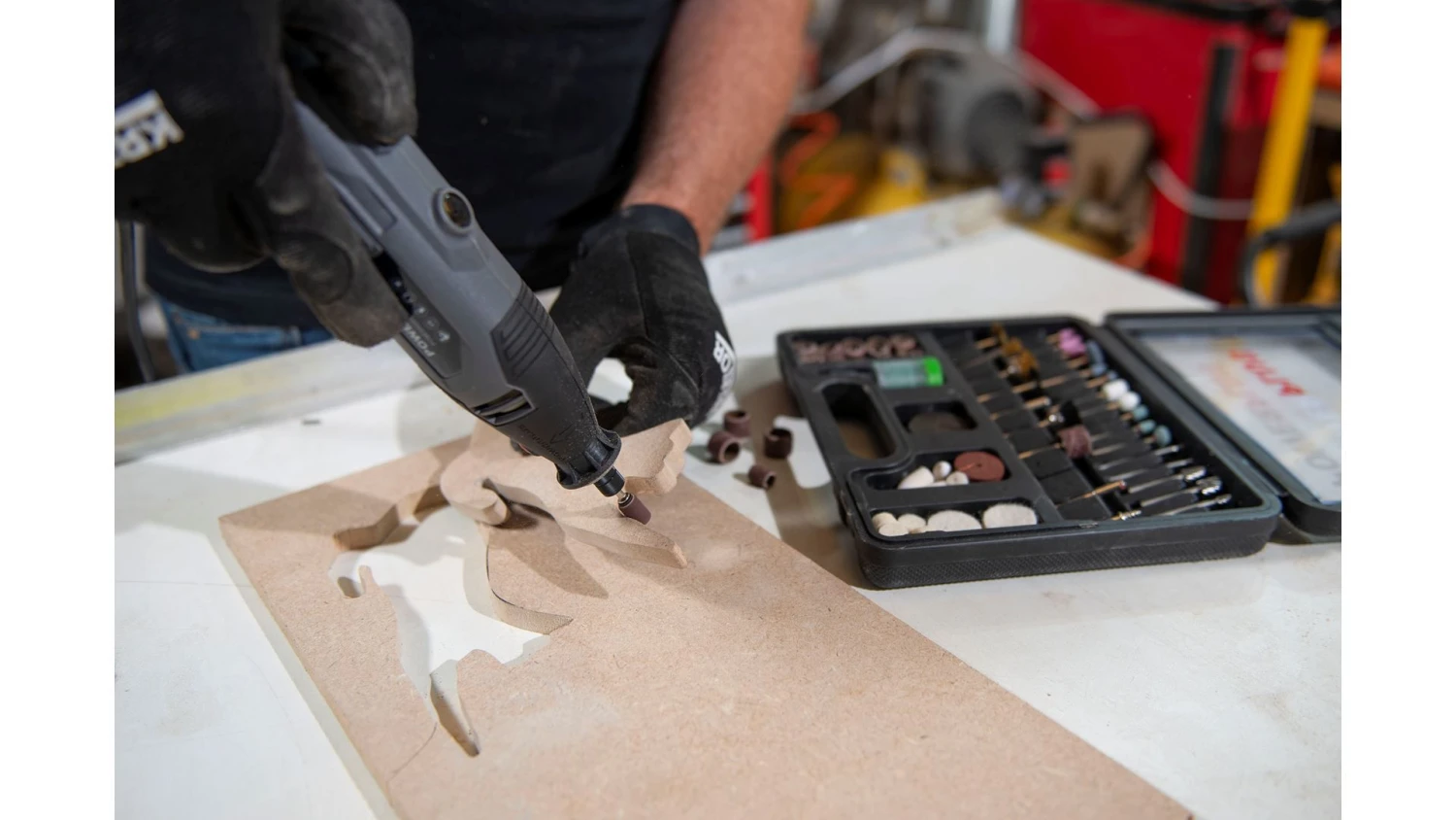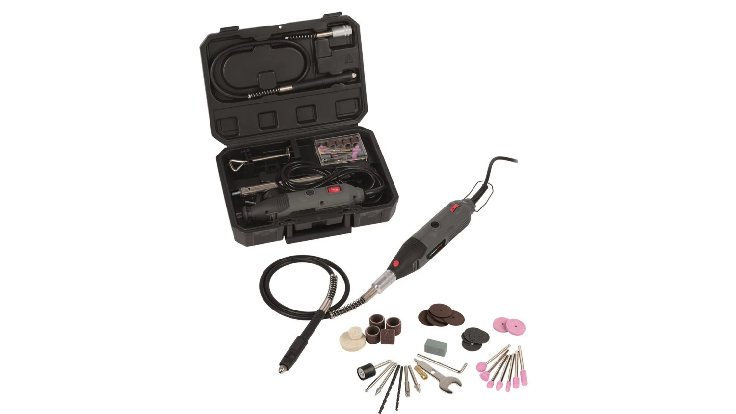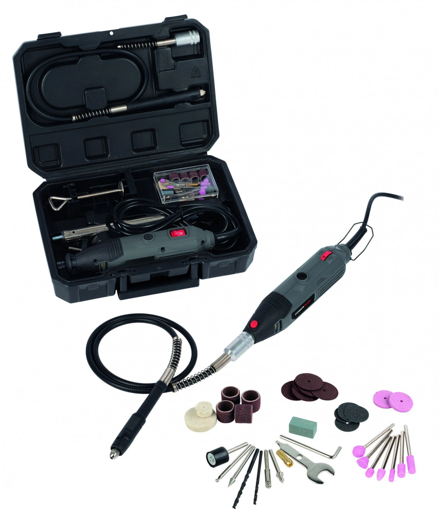 Het aantal verschillende klusjes dat je met deze compacte roterende multitool kan uitvoeren is indrukwekkend. Maak je keuze uit de 40 bijgeleverde opzetstukjes en begin met boren, frezen, graveren, polijsten, afkorten, slijpen of schuren. De 40 accessoires zitten mooi opgeborgen in een BMC-koffer, waardoor je niet lang hoeft te zoeken naar het juiste opzetstuk.